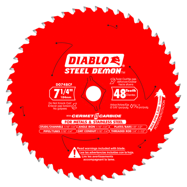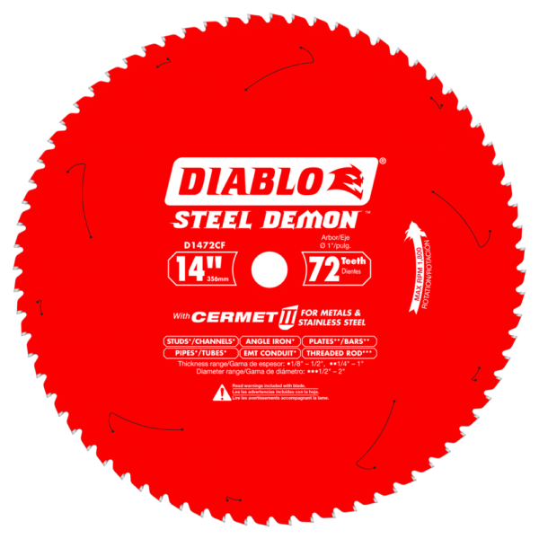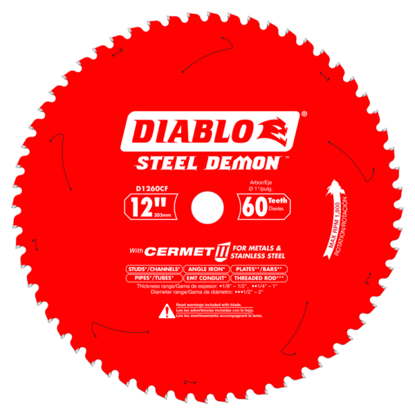 Steel Demon Diablo metal cutting saw blades are specially designed for the extreme demands of ferrous metal cutting; thereby enabling precise cuts without sparks, heat or burred edges that result from using abrasive blades. With up to 40X the life of standard abrasive disc, Steel demon delivers unparalleled performance and superior quality cuts. Blades feature Freud’s TiCo Hi-Density Carbide, Laser cut bodies, Anti-vibration technology, Perma-Shield Non-Stick Coating, Triple Chip Design, and pretensioned blades. Diablo’s blade is designed to fit Evolution, Jancy, Morse, and Similar Metal Cutting Saws.