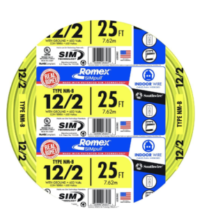Southwire 28828221 Romex SIMpull® Cable With Ground, Yellow, 12/2 Awg, NM-B, 25 Ft