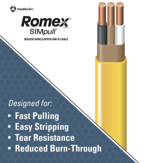 Southwire’s Romex SIMpull ® Type NM-B cable meets or exceeds UL Standard 83, UL Standard 719, Federal Specification A-A-59544, and requirements of the National Electrical Code.