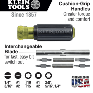 Klein Tools 32500 11-in-1 Multi Bit Screwdriver/Nut Driver with Cushion Grip Multi Purpose